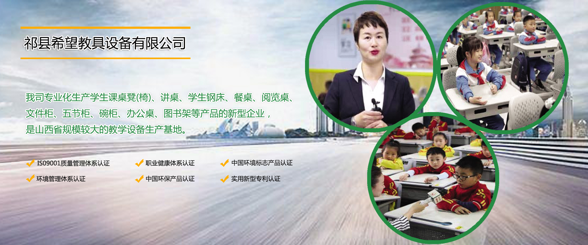 山西省祁县希望教具设备有限责任公司成立于2006年10月12日(前身祁县希望教具厂,始建于2002年1月),是专业化生产学生课桌凳(椅)、讲桌、学生钢床、餐桌、阅览桌、文件柜、五节柜、碗柜、办公桌、图书架等产品的新型企业,是山西省规模较大的教学设备生产基地。现有员工140余人,其中管理人员5名,高级技师20名,设计师2名。山西省祁县“希望世家”产品经过多年不断设计、开发,已形成完善有效的企业运营模式,祁县“希望世家”教具品种齐全、品质优良、服务上乘、畅销省内外,深受新老客户好评,祁县“希望世家”产品已经成为山西省同类产品的知名品牌。本公司近年来投入巨资,进行改建、扩建,规模宏大,堪称一流。生产设备投入全自动无毛刺切割机、采用大量机器人焊接,技术水平均以达到国内先进水平。生产产量急剧增长,日生产课桌登2000金套、高低床500金套,储物柜500余件,年产值达到四千余万元。本公司通过了IS09001质量管理体系认证、环境管理体系认证、职业健康体系认证、中国环保产品认证、中国环境标志产品认证等,使公司产品质量臻于完美,我们“希望人”深知“质量是企业的生命”我们不满足于现在的完美,因为我们懂得精益求精才是我们不断的追求,我们只有不断超越今日所有,才能让我们的“希望世家”产品独领风骚!祁县“希···